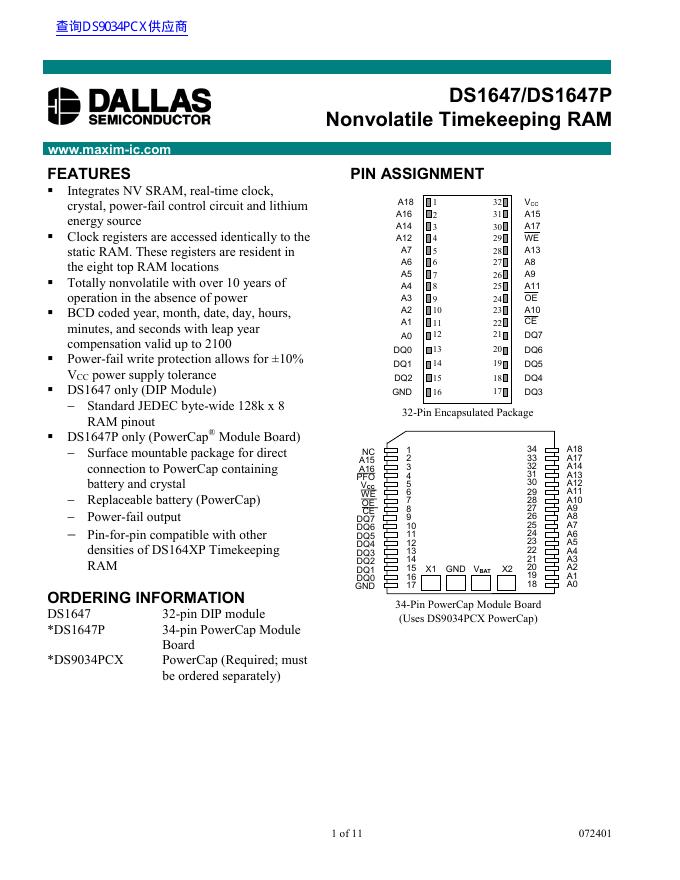DALLAS DS1647/DS1647P 数据手册.pdf