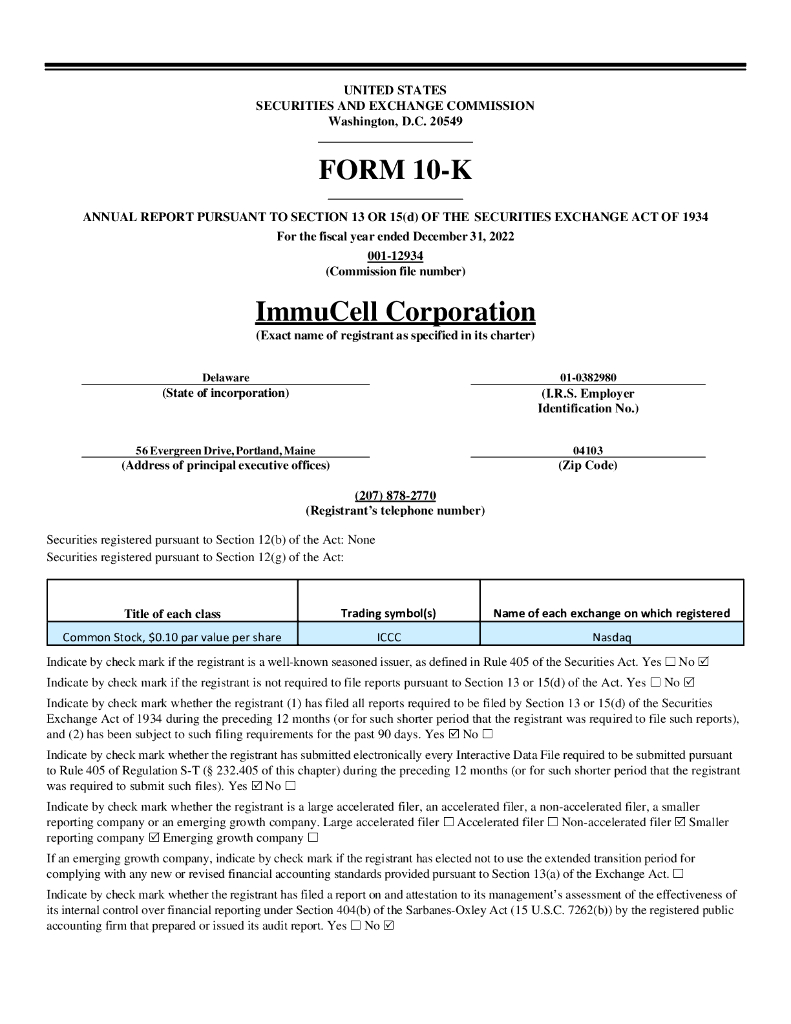 ImmuCell Corporation(ICCC)2022财年年度报告(英文版).pdf