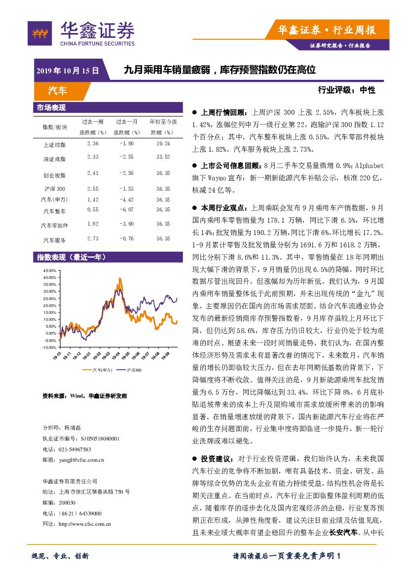 华鑫证券:汽车行业周报:九月乘用车销量疲弱,库存预警指数仍在高位.pdf