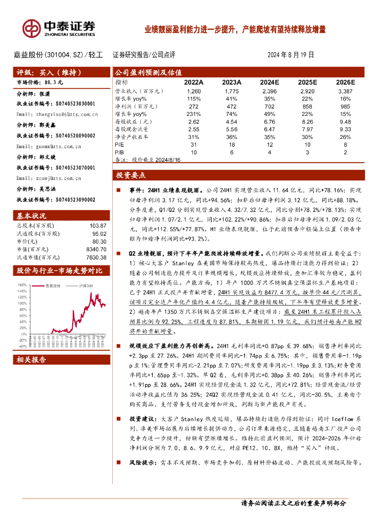 中泰证券:嘉益股份(301004)-业绩靓丽盈利能力进一步提升,产能爬坡有望持续释放增量.pdf