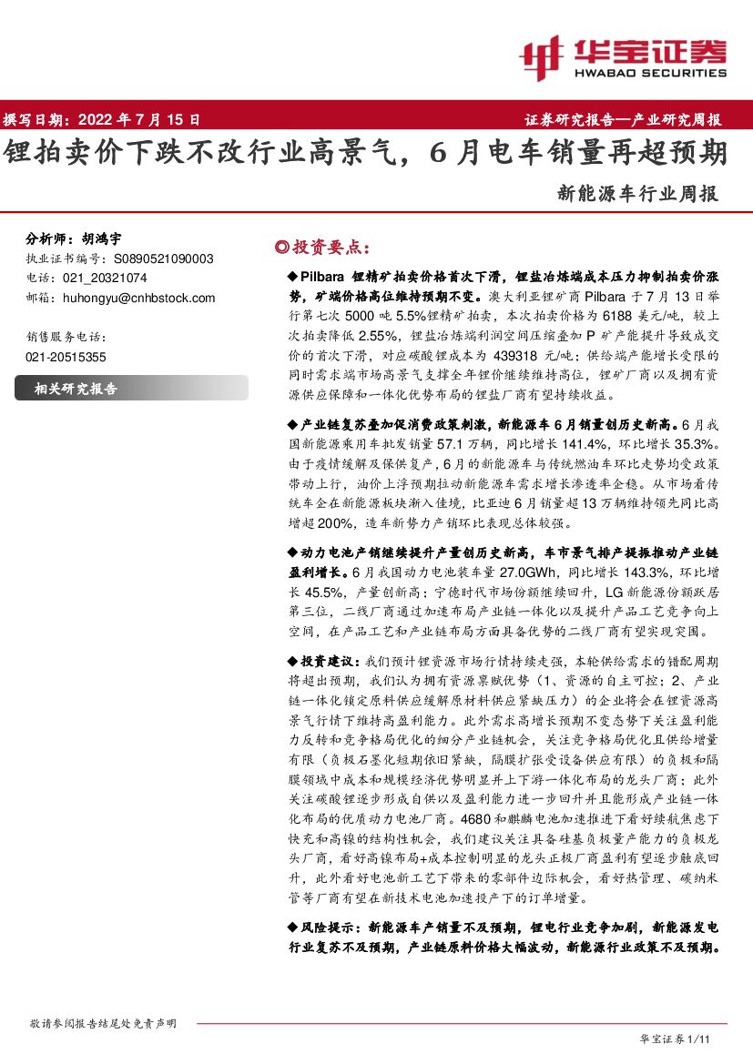 华宝证券:新能源车行业周报:锂拍卖价下跌不改行业高景气,6月电车销量再超预期.pdf