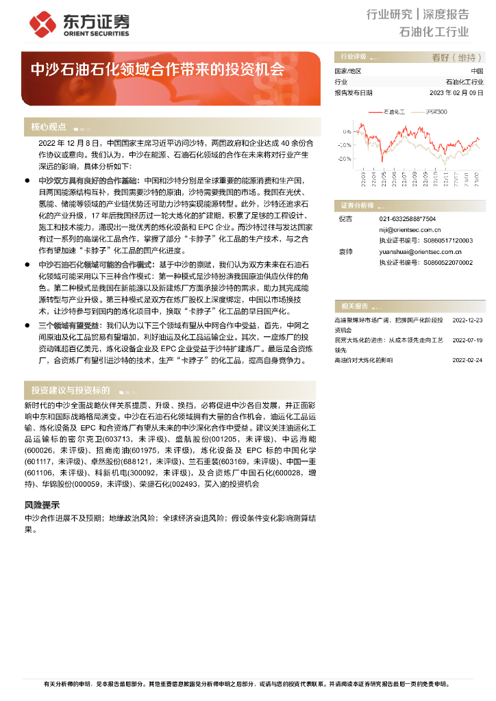 东方证券:石油化工行业深度报告:中沙石油石化领域合作带来的投资机会.pdf