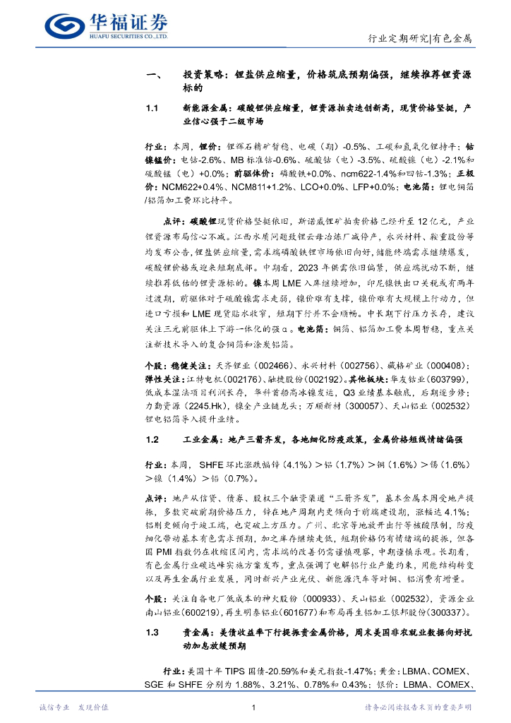 华福证券:有色金属行业周报:基本金属谨慎乐观,锂盐价格筑底预期偏强,继续推荐锂资源标的.pdf
