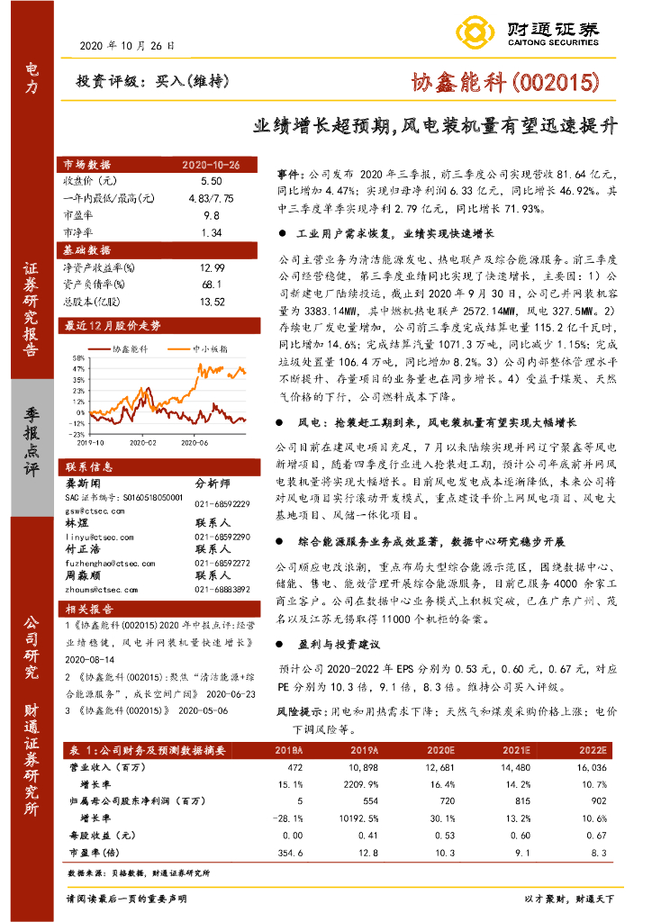 财通证券:协鑫能科(002015)-业绩增长超预期,风电装机量有望迅速提升.pdf