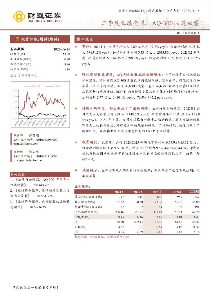 财通证券:澳华内镜(688212)-二季度业绩亮眼,AQ-300快速放量.pdf