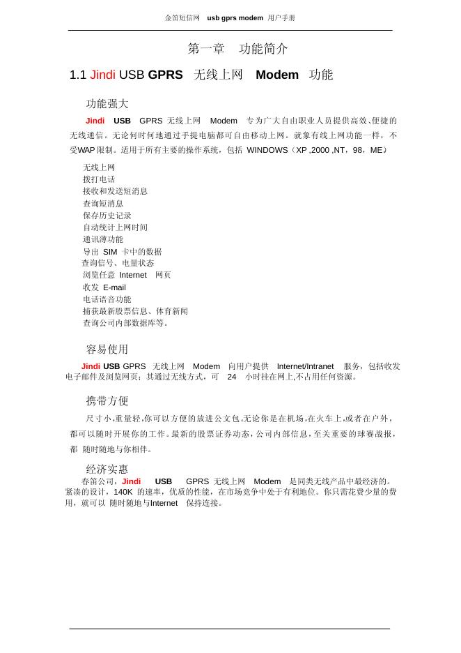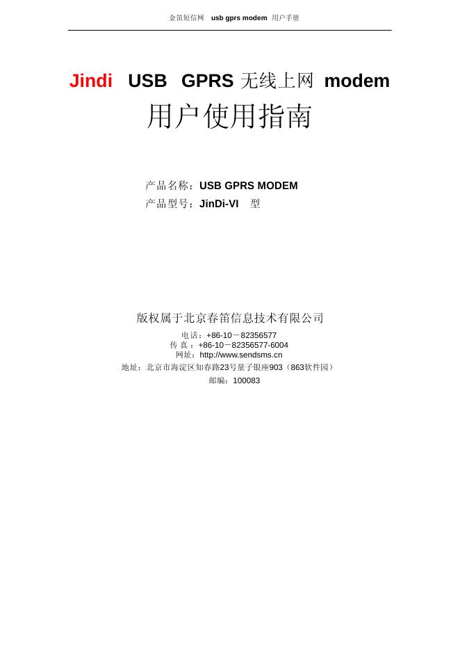Jindi USB GPRS 无线上网 modem 用户使用指南.pdf