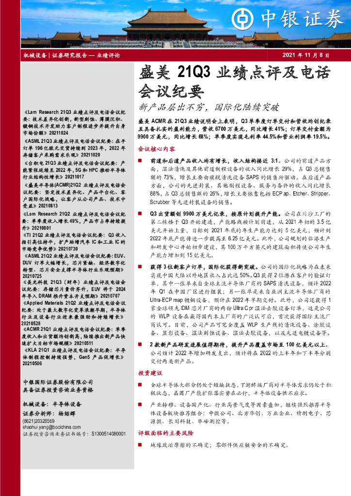 中银证券:机械设备:盛美21Q3业绩点评及电话会议纪要:新产品层出不穷,国际化陆续突破.pdf