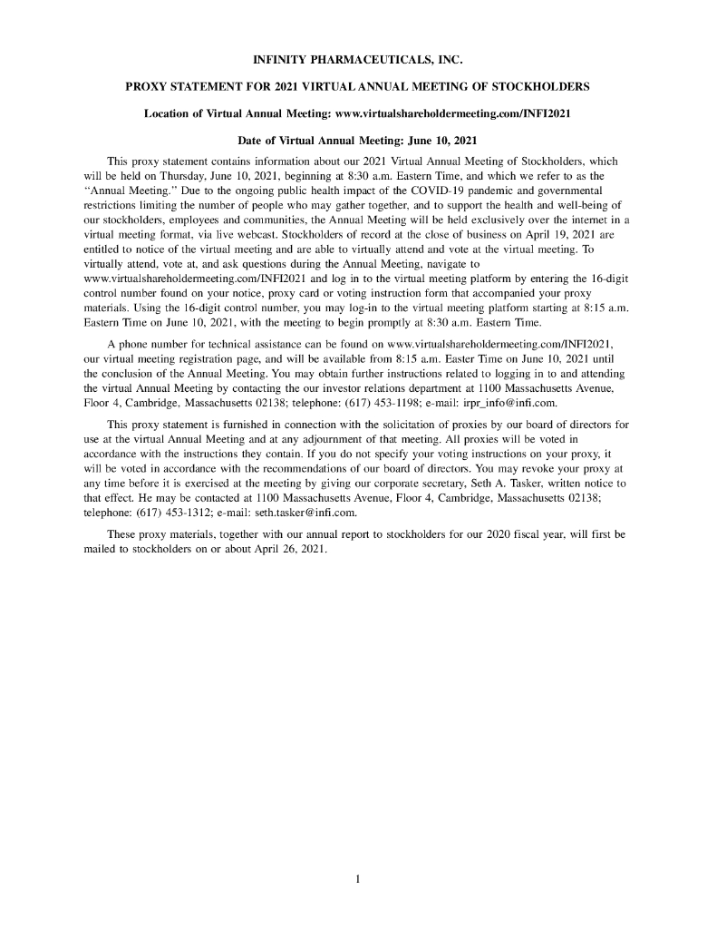 Infinity Pharmaceuticals(INFI)2020财年年度报告(英文版).pdf