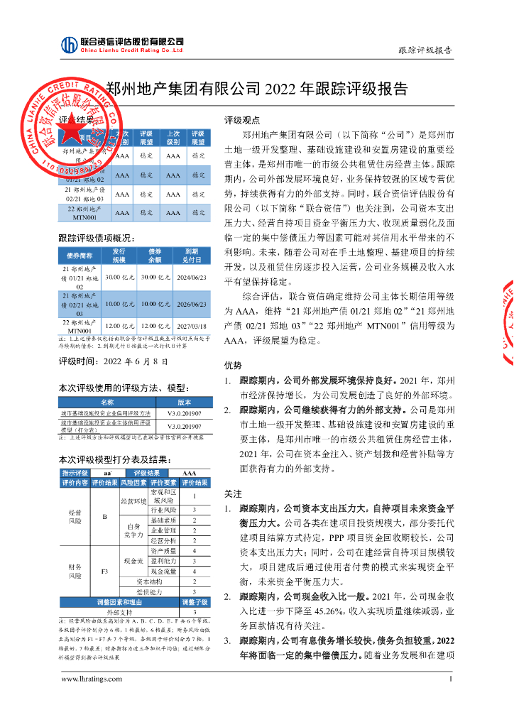 联合资信:郑州地产集团有限公司2022年跟踪评级报告.pdf