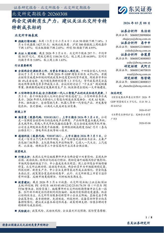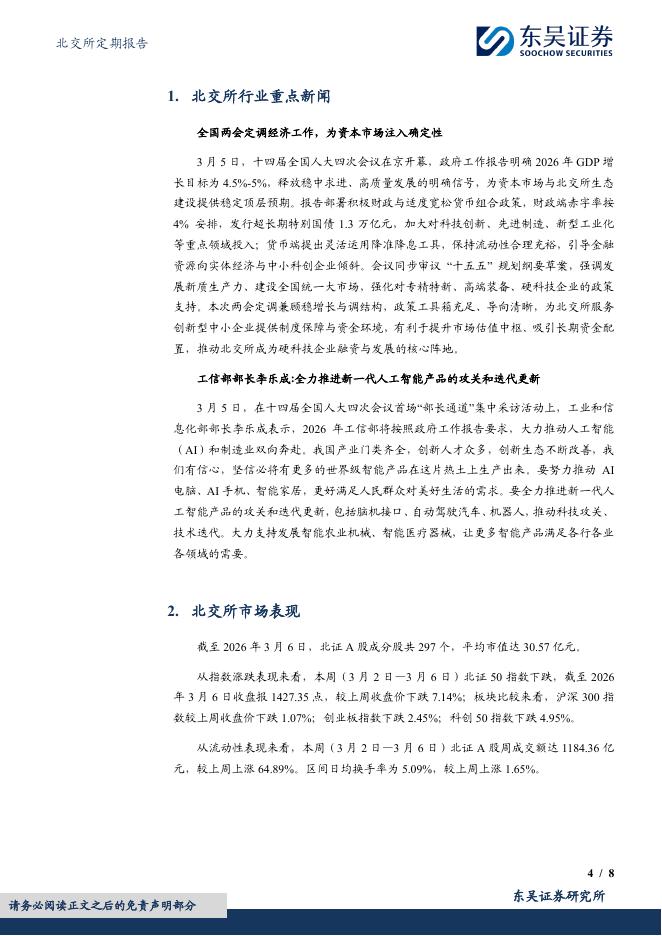 东吴证券:北交所定期报告:两会定调新质生产力,建议关注北交所专精特新成长标的-260308.pdf