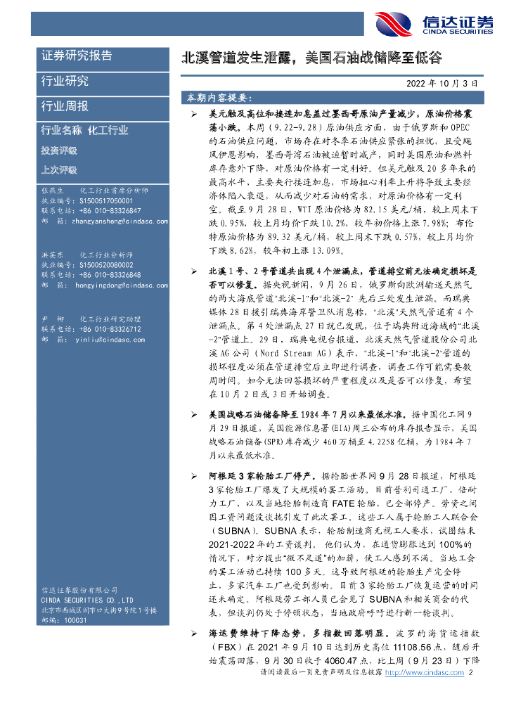 信达证券:化工行业周报:北溪管道发生泄露,美国石油战储降至低谷.pdf