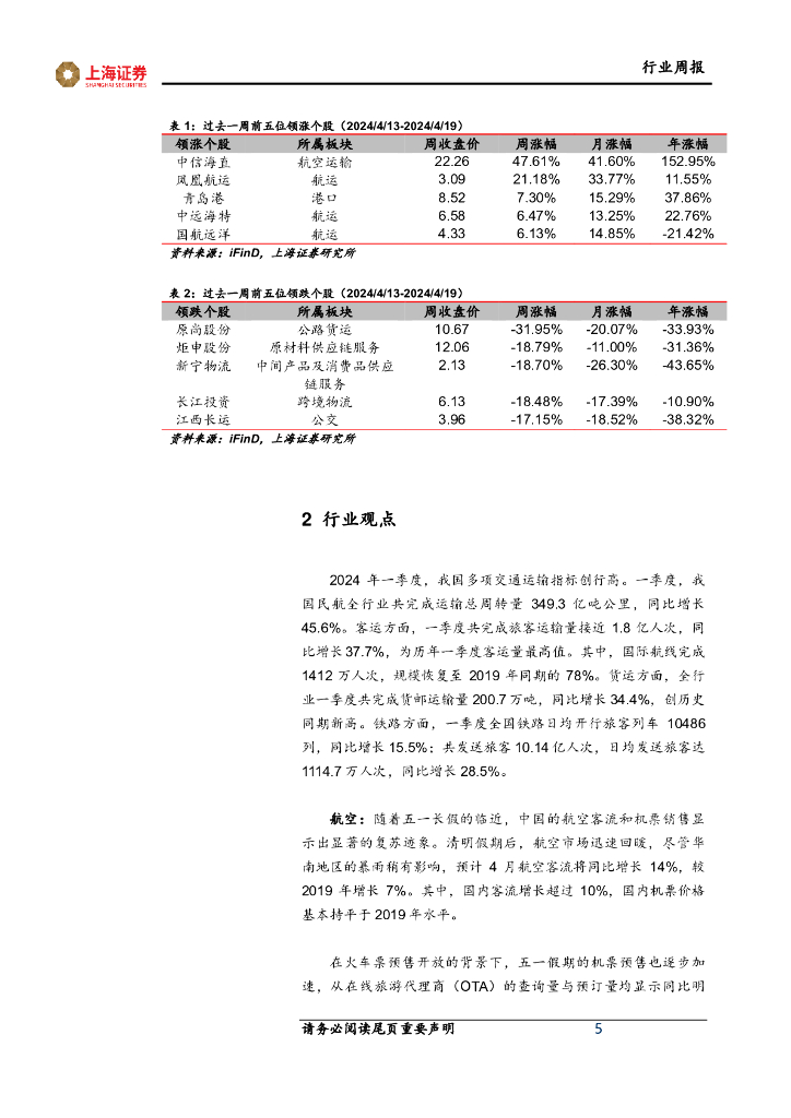 上海证券:交通运输行业周报:五一假期机票预售逐步加速,量价预计超过2019年同期.pdf