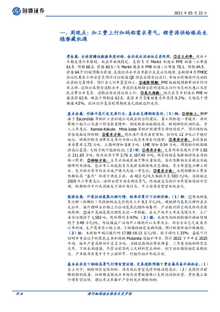 国盛证券:有色金属行业周报:供给扰动支撑铝价上行,通胀交易兑现贵金属行情.pdf