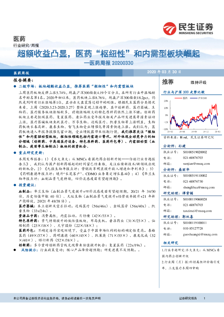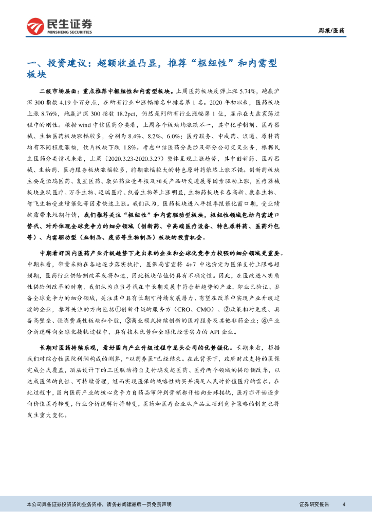 民生证券:医药周报:超额收益凸显,医药“枢纽性”和内需型板块崛起.pdf