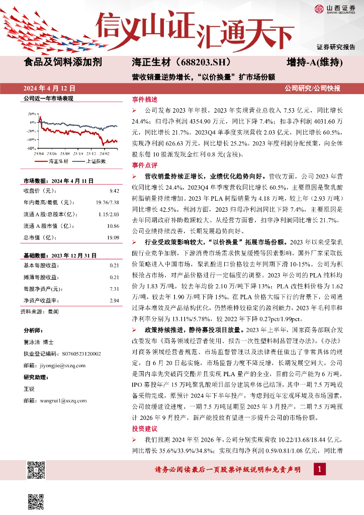 山西证券:海正生材(688203)-营收销量逆势增长,“以价换量”扩市场份额.pdf