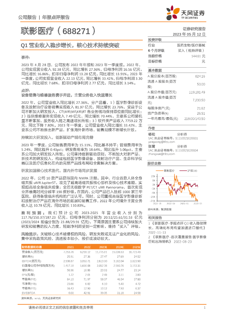 天风证券:联影医疗(688271)-Q1营业收入稳步增长,核心技术持续突破.pdf