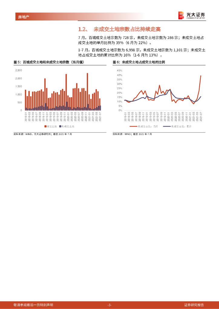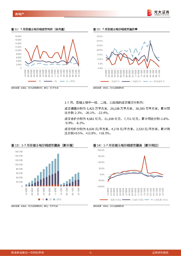 光大证券:百城土地成交月度跟踪报告(2021年7月):1-7月百城土地成交缩量20%,成交均价上涨15%.pdf