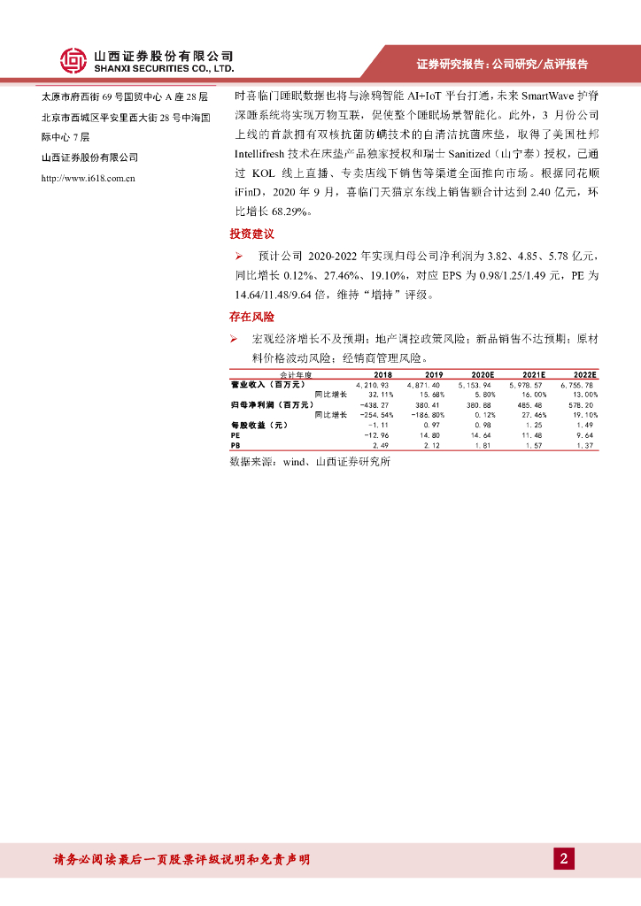 山西证券:喜临门(603008)-公司订单基本饱和,全新推出智能床垫Smart1.pdf