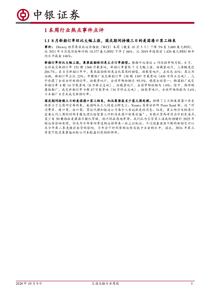 中银证券:交通运输行业周报:8月新船订单环比大幅上涨,国庆假期机票呈现量升价跌趋势.pdf
