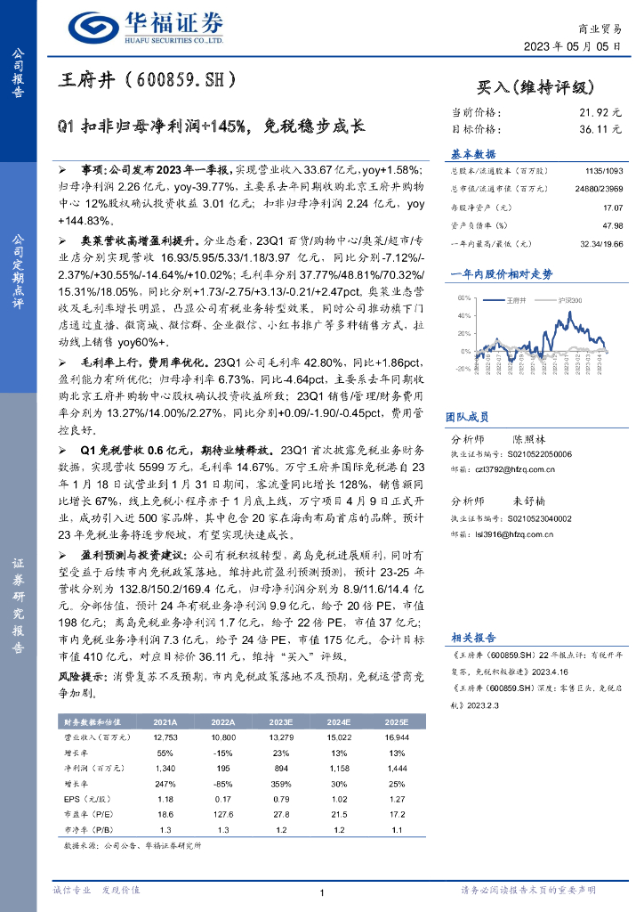 华福证券:王府井(600859)-Q1扣非归母净利润+145%,免税稳步成长.pdf