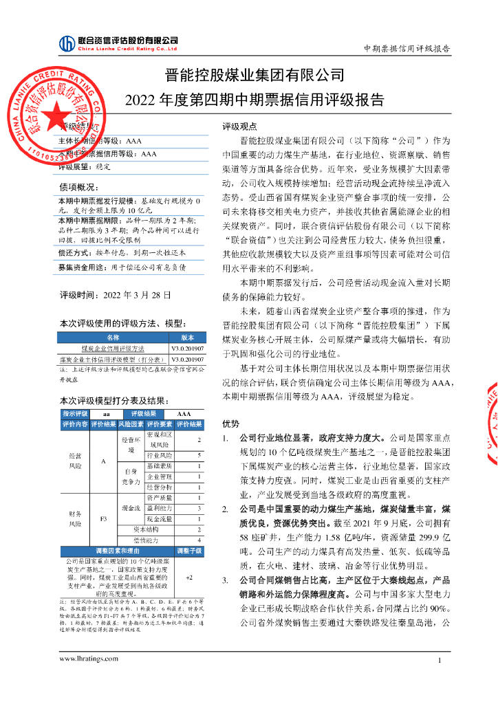 联合资信:晋能控股煤业集团有限公司2022年度第四期中期票据信用评级报告(更新).pdf