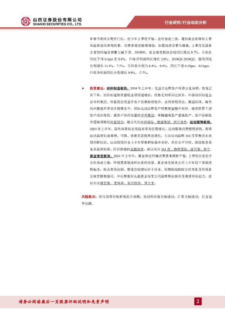 山西证券:纺织服装2024H1中报综述:2024H1纺织制造板块业绩表现靓丽,运动服饰消费展现韧性.pdf