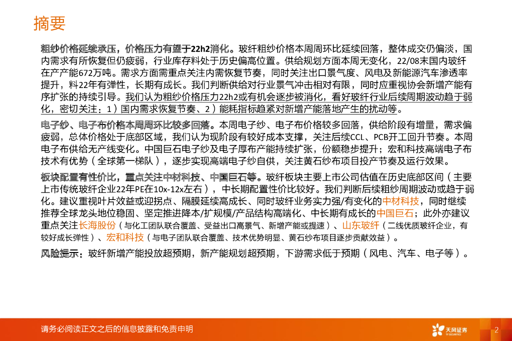 天风证券:玻纤周跟踪:粗纱价格延续回落,电子布价格本周较多调整.pdf
