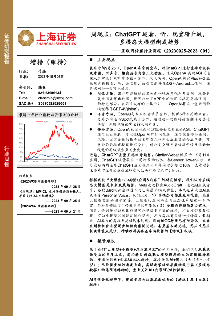 上海证券:互联网传媒行业周报:周观点:ChatGPT迎看、听、说重磅升级,多模态大模型渐成趋势.pdf
