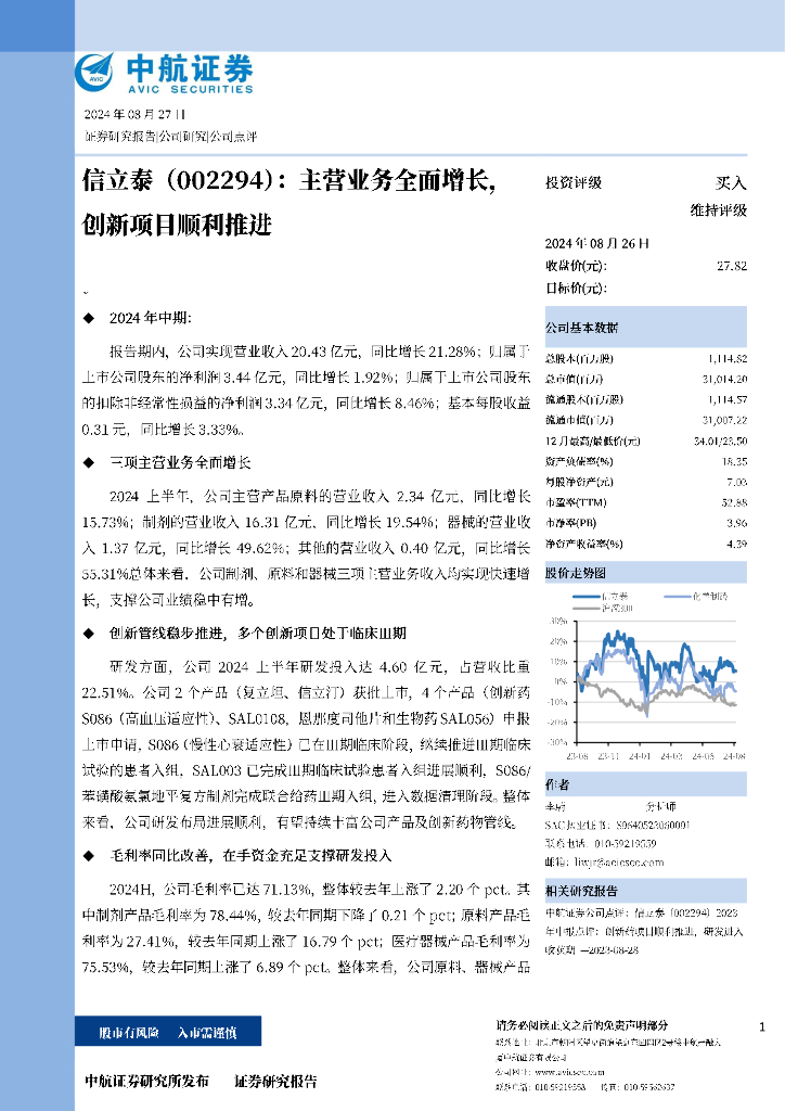 中航证券:信立泰(002294)-主营业务全面增长,创新项目顺利推进.pdf
