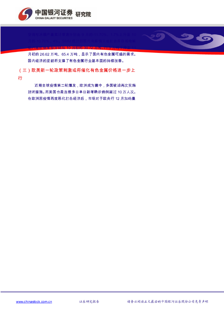 中国银河:有色金属行业:疫苗利好与政策刺激将强化经济复苏预期,强调顺周期有色金属行业的投资机会.pdf