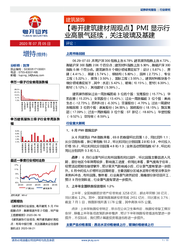 粤开证券:【粤开建筑建材周观点】PMI显示行业高景气延续,关注玻璃及基建.pdf