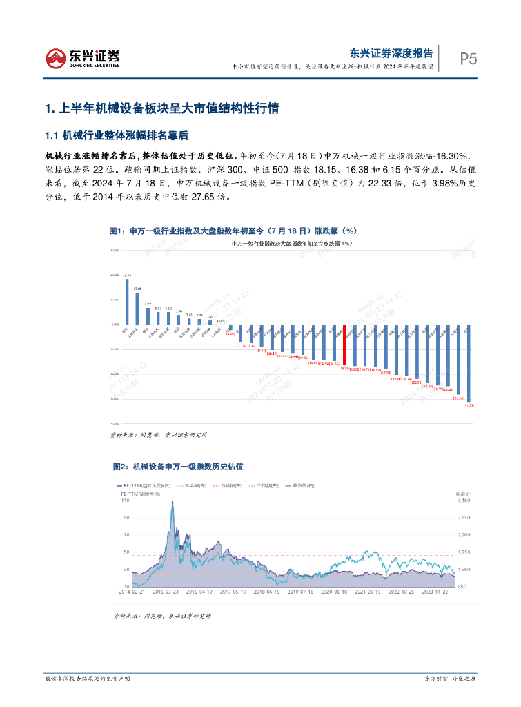 东兴证券:机械行业2024年半年度展望:中小市值有望迎估值修复,关注设备更新主线.pdf