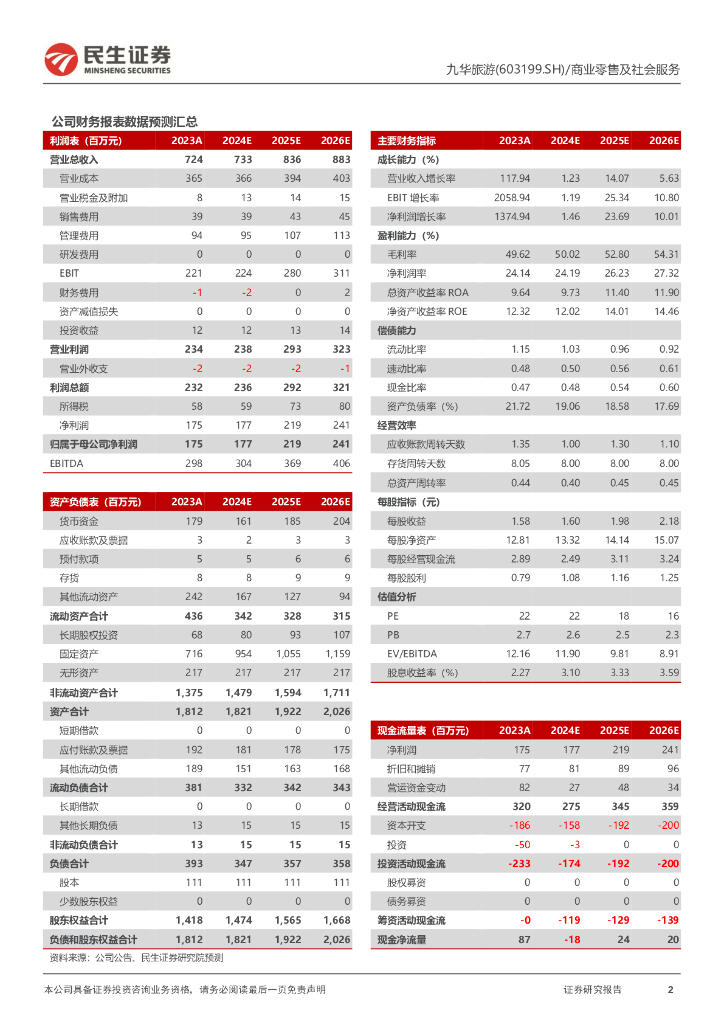 民生证券:九华旅游(603199)-2024年三季报点评:24Q3利润短期承压,长维度关注狮子峰索道及旅游发展规划推进情况.pdf