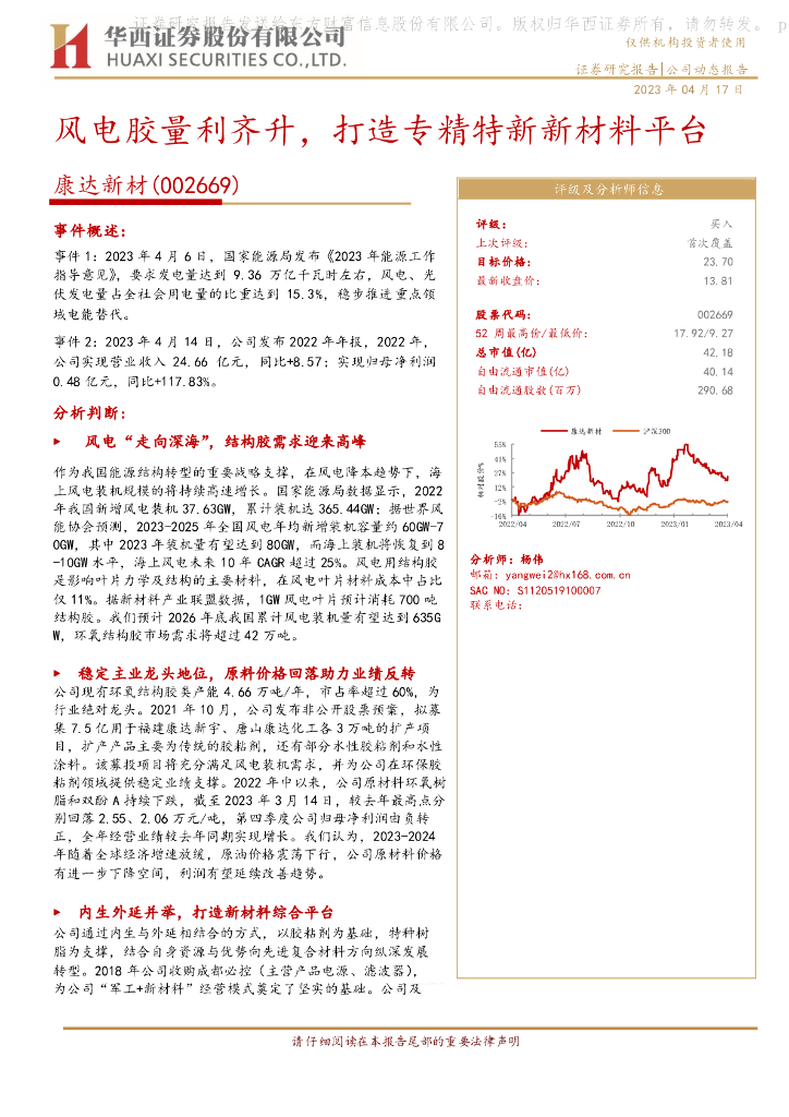 华西证券:康达新材(002669)-风电胶量利齐升,打造专精特新新材料平台.pdf