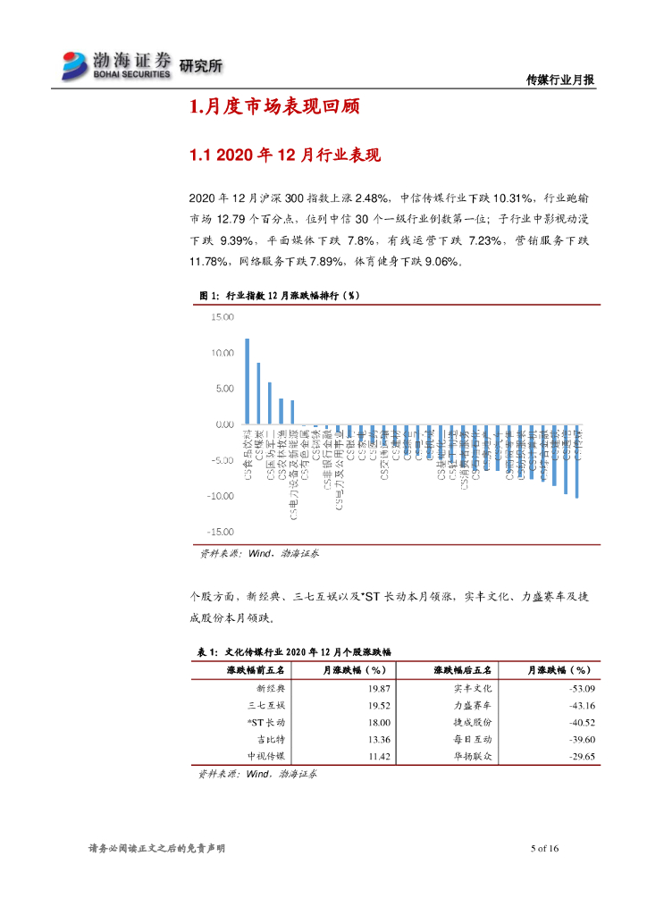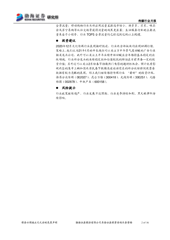 渤海证券:传媒行业月报:12月行业表现低迷,关注春节档.pdf