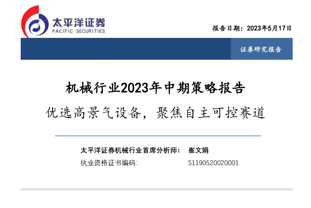 太平洋证券:机械行业2023年中期策略报告:优选高景气设备,聚焦自主可控赛道.pdf