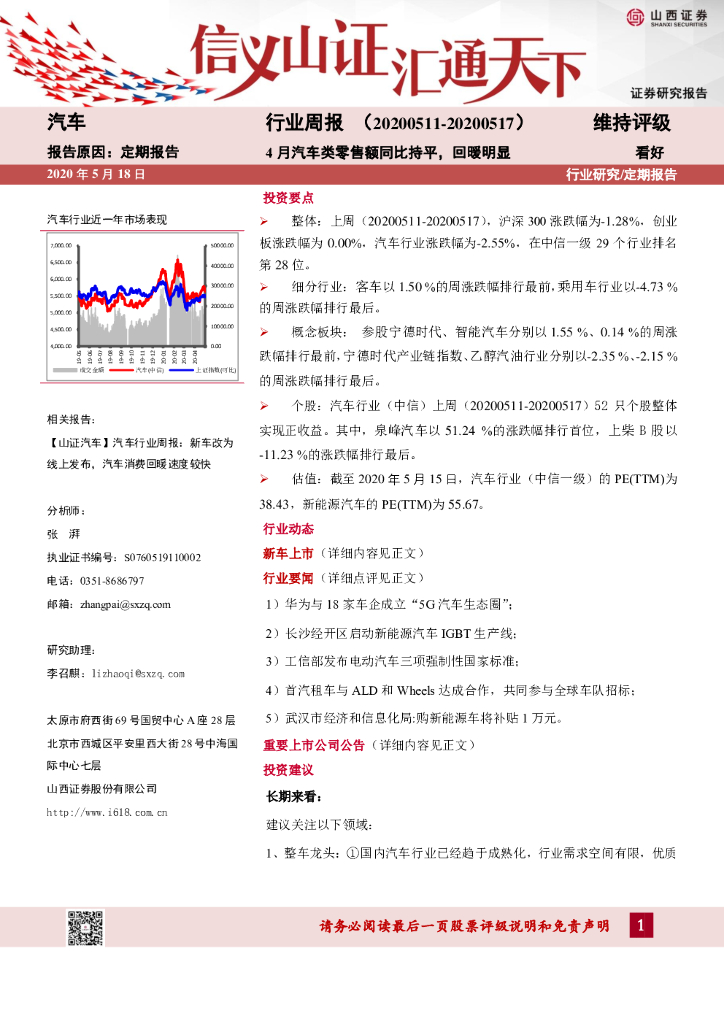 山西证券:汽车行业周报:4月汽车类零售额同比持平,回暖明显.pdf