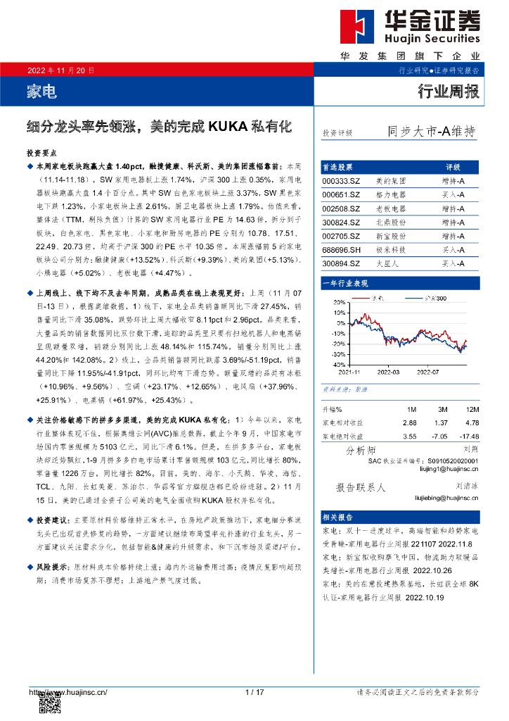 华金证券:家电行业周报:细分龙头率先领涨,美的完成KUKA私有化.pdf