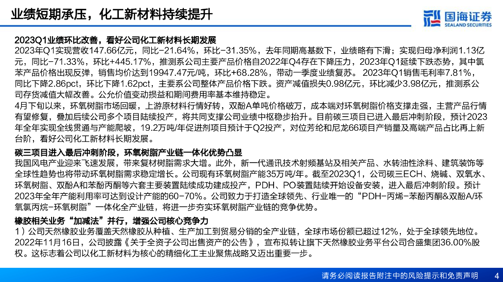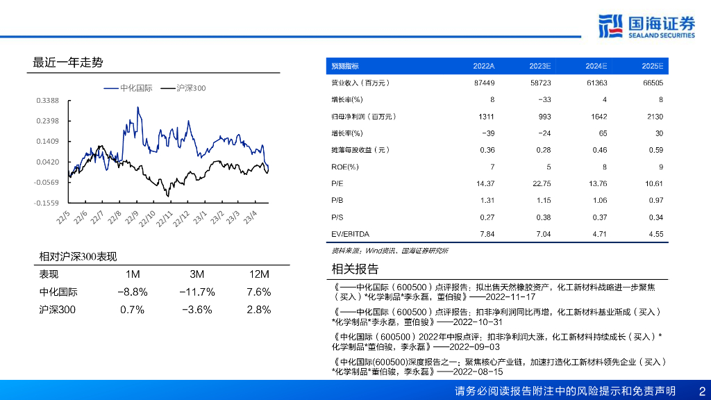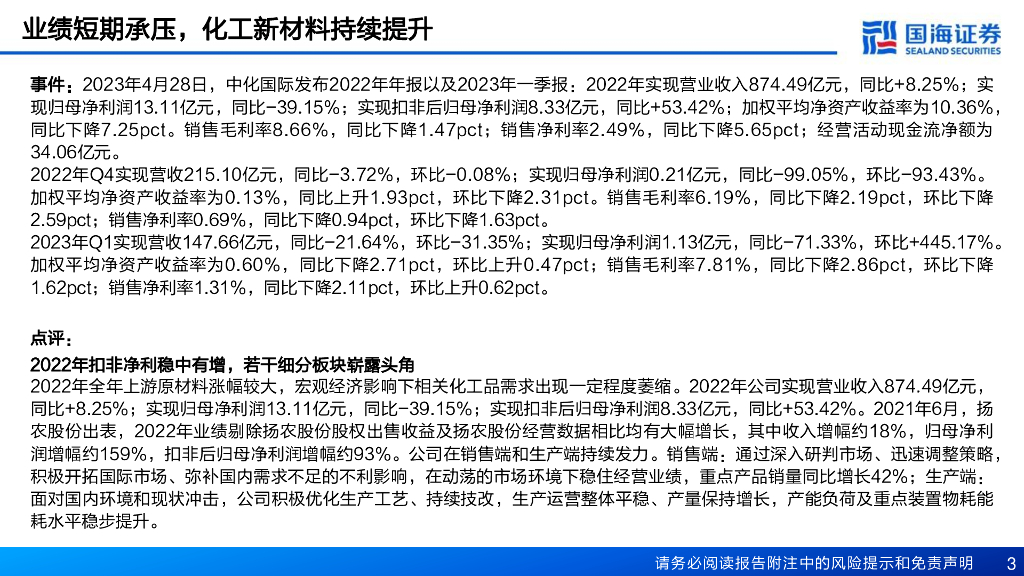 国海证券:中化国际(600500)-2022年报及2023年一季报点评:业绩短期承压,化工新材料持续提升.pdf