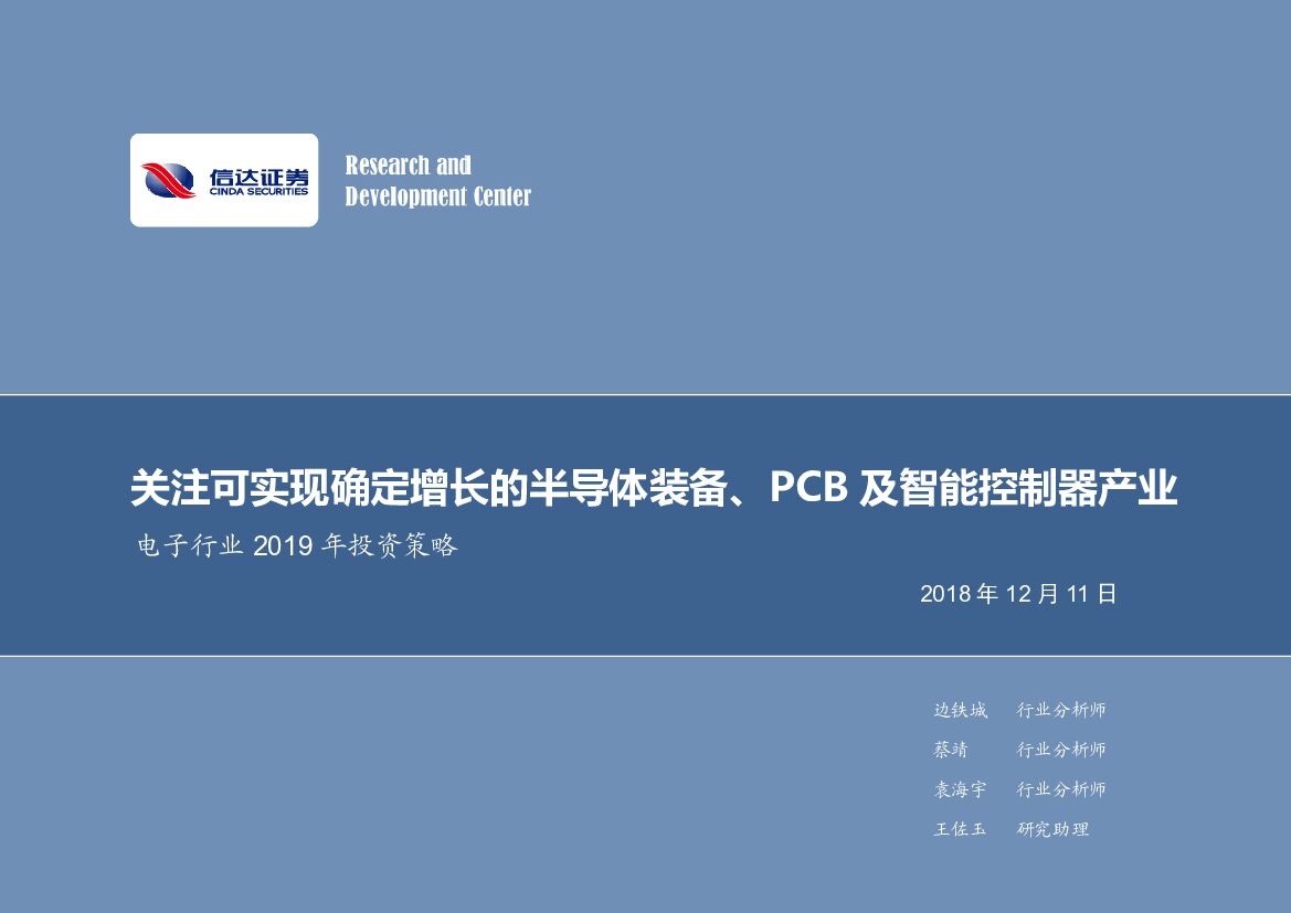 信达证券:电子行业2019年投资策略:关注可实现确定增长的半导体装备、PCB及智能控制器产业.pdf