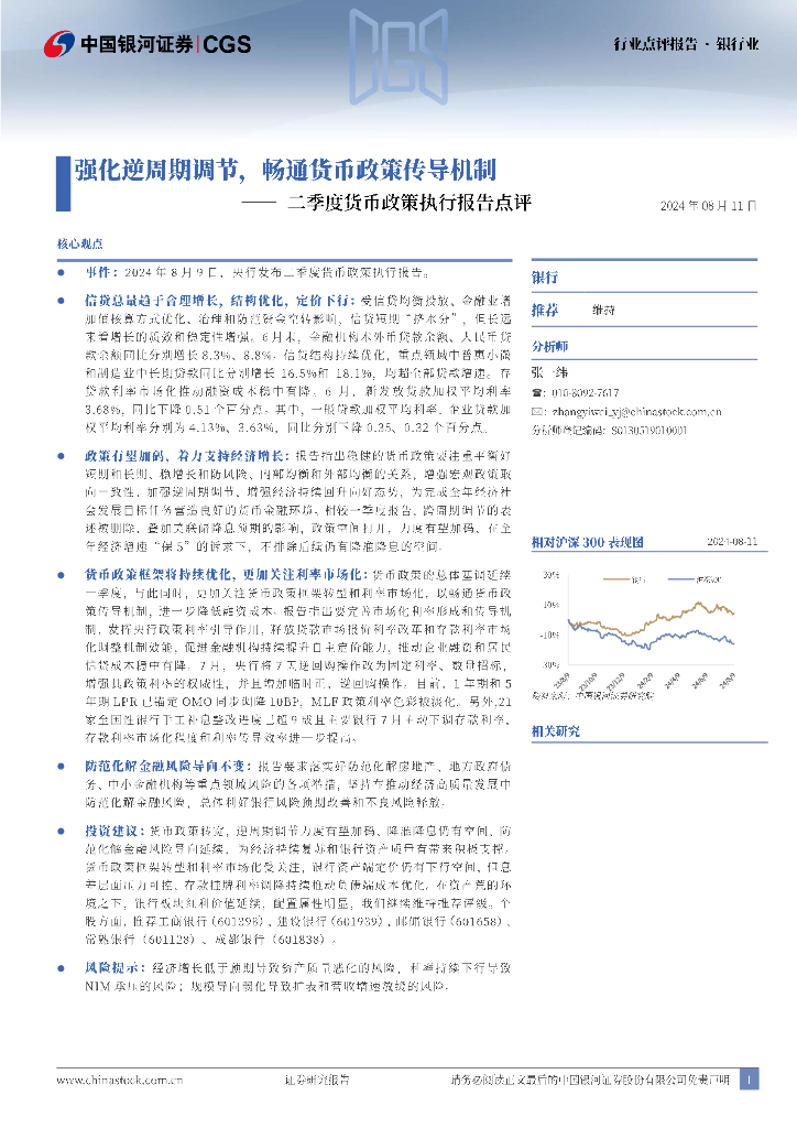 中国银河:银行业二季度货币政策执行报告点评:强化逆周期调节,畅通货币政策传导机制.pdf