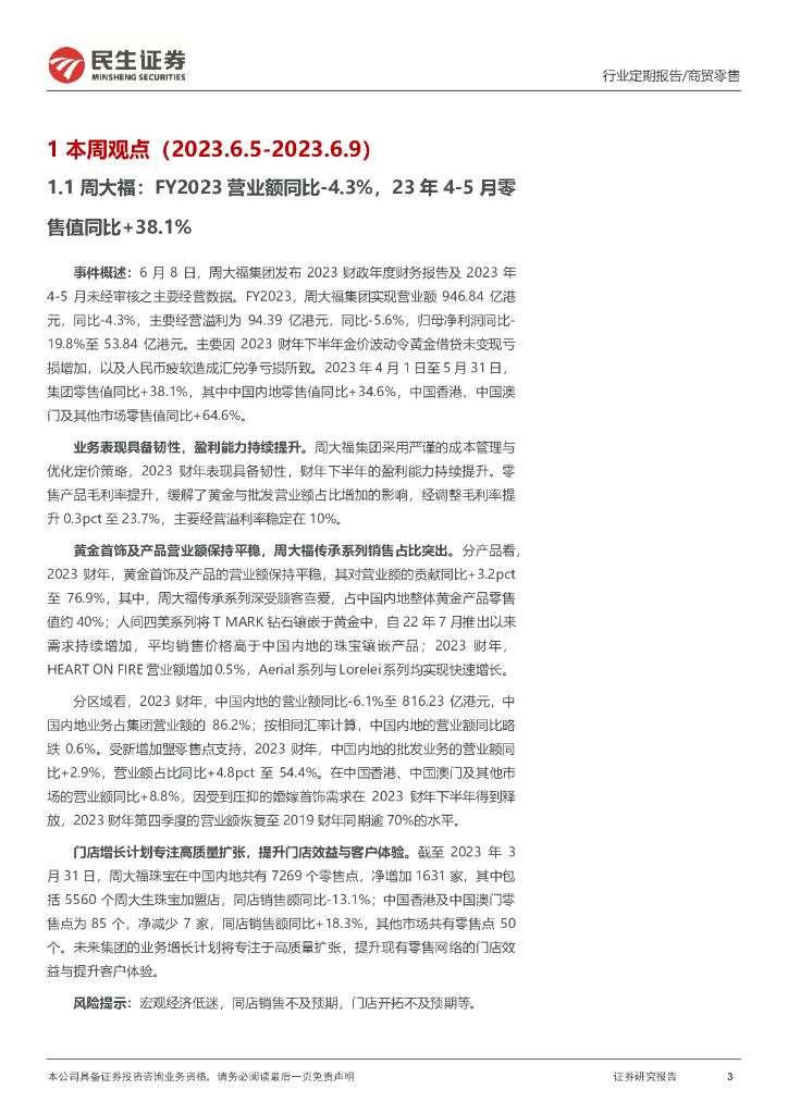民生证券:零售周观点:周大福发布2023财年年报,家家悦发布激励计划.pdf