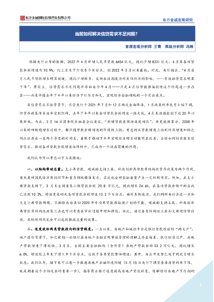东方金诚:当前如何解决信贷需求不足问题?.pdf