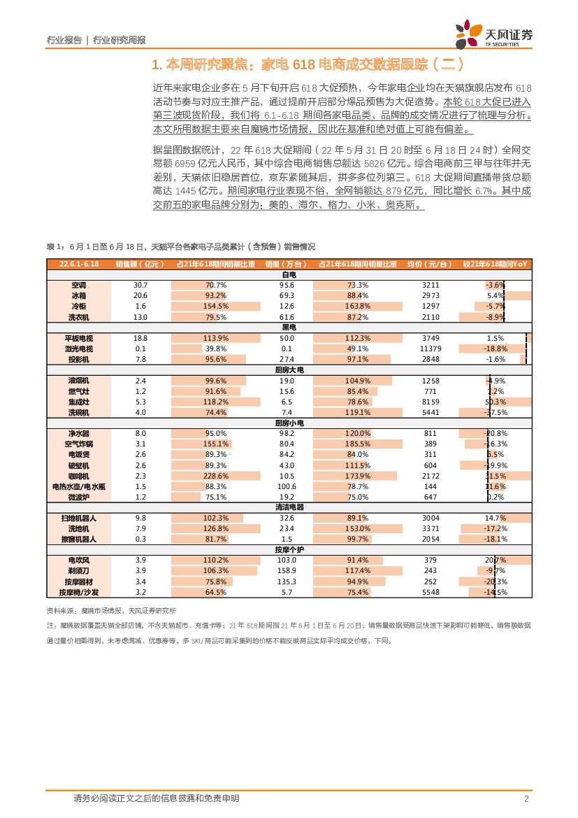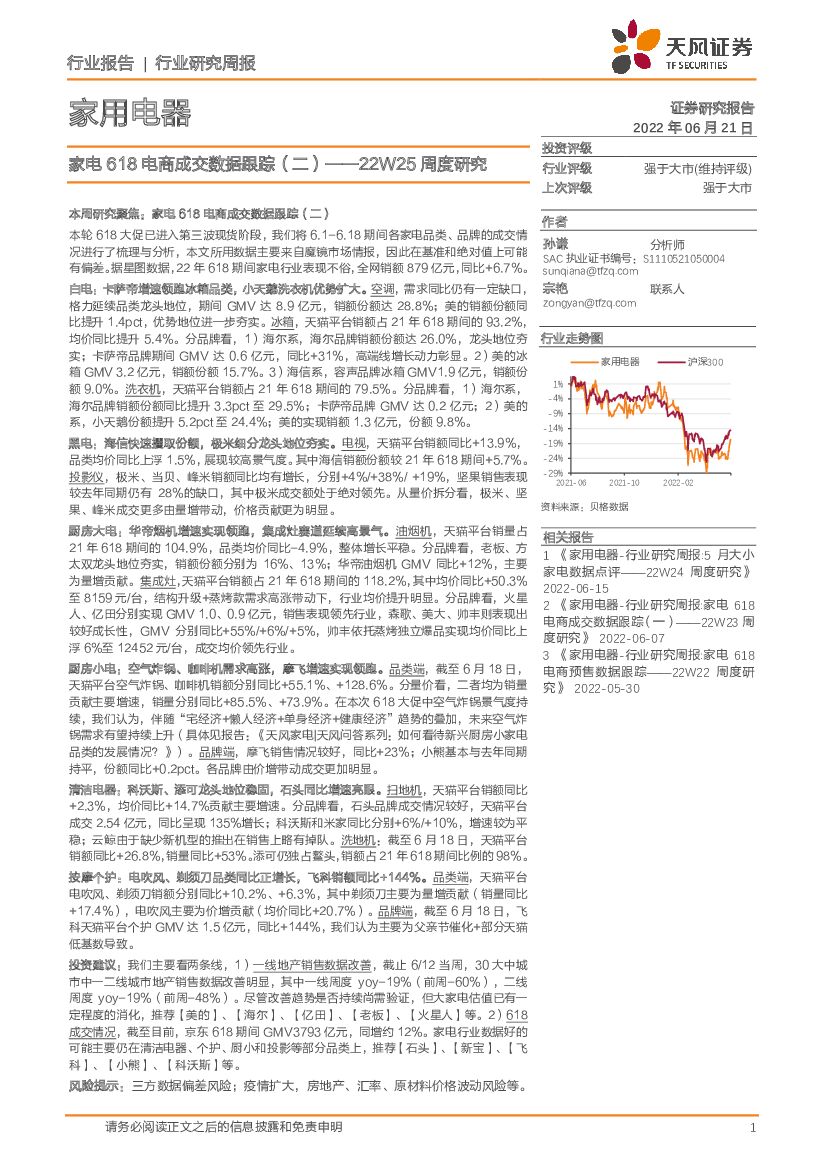 天风证券:家用电器22W25周度研究:家电618电商成交数据跟踪(二).pdf