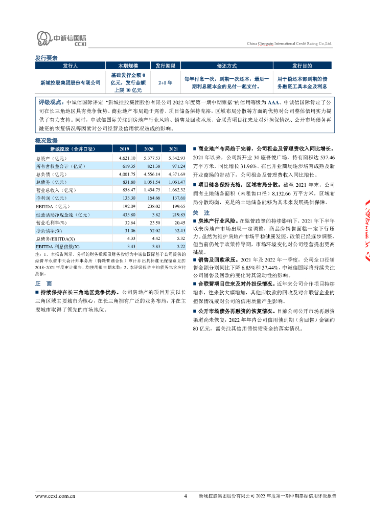 中诚信:新城控股集团股份有限公司2022年度第一期中期票据信用评级报告.pdf
