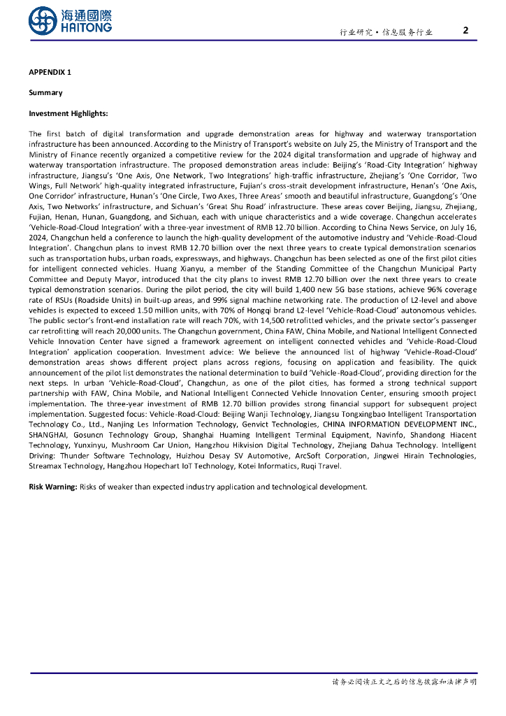 海通国际:信息服务行业跟踪报告:“车路云”产业观察(5):公路水路交通基础设施数字化转型升级示范区域名单公布,城市车路云一体化快速推进.pdf
