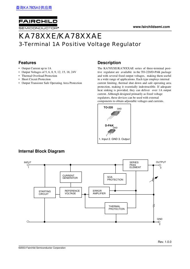 FAIRCHILD KA78XXE/KA78XXAE 3-Terminal 1A Positive Voltage Regulator 数据手册.pdf