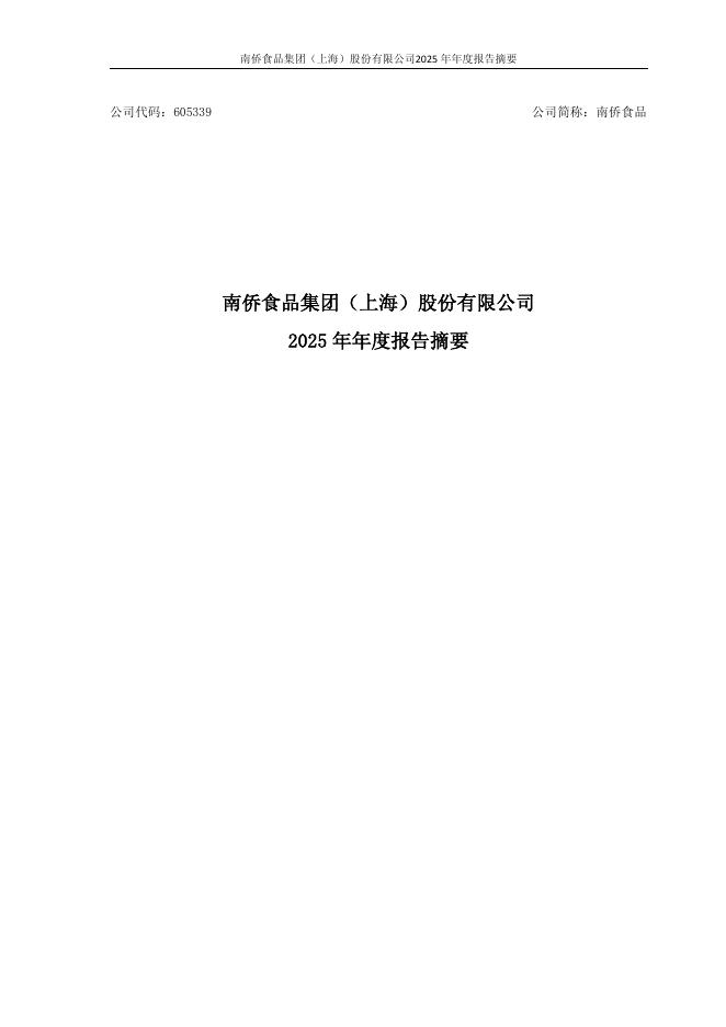 605339-南侨食品:南侨食品集团(上海)股份有限公司2025年年度报告摘要.pdf
