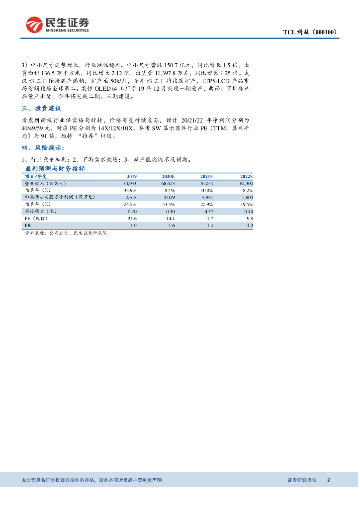 民生证券:TCL科技(000100)-2019年度报告点评:战略聚焦显示主业,市场份额进一步提升.pdf