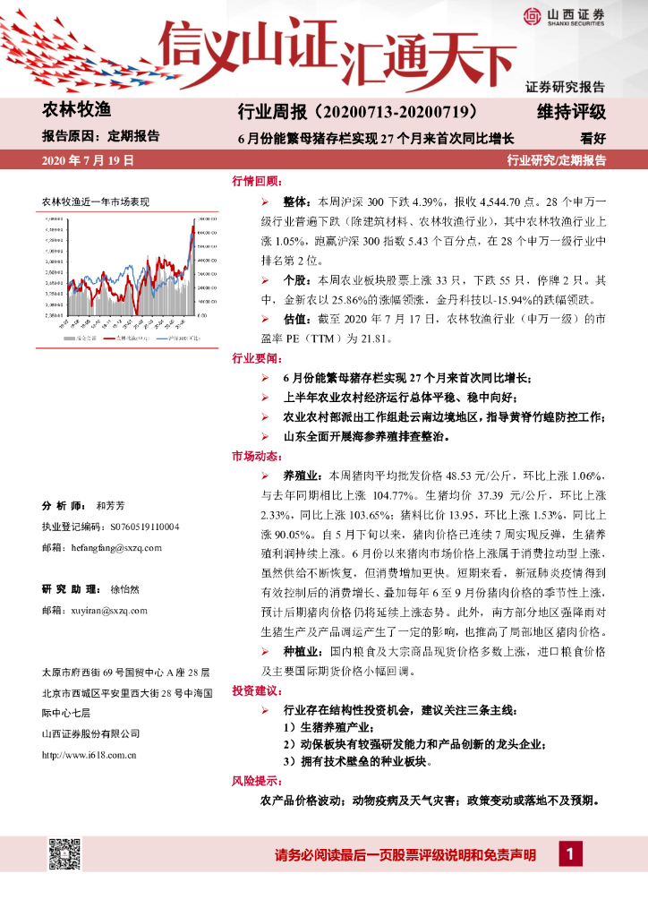 山西证券:农林牧渔行业周报:6月份能繁母猪存栏实现27个月来首次同比增长.pdf